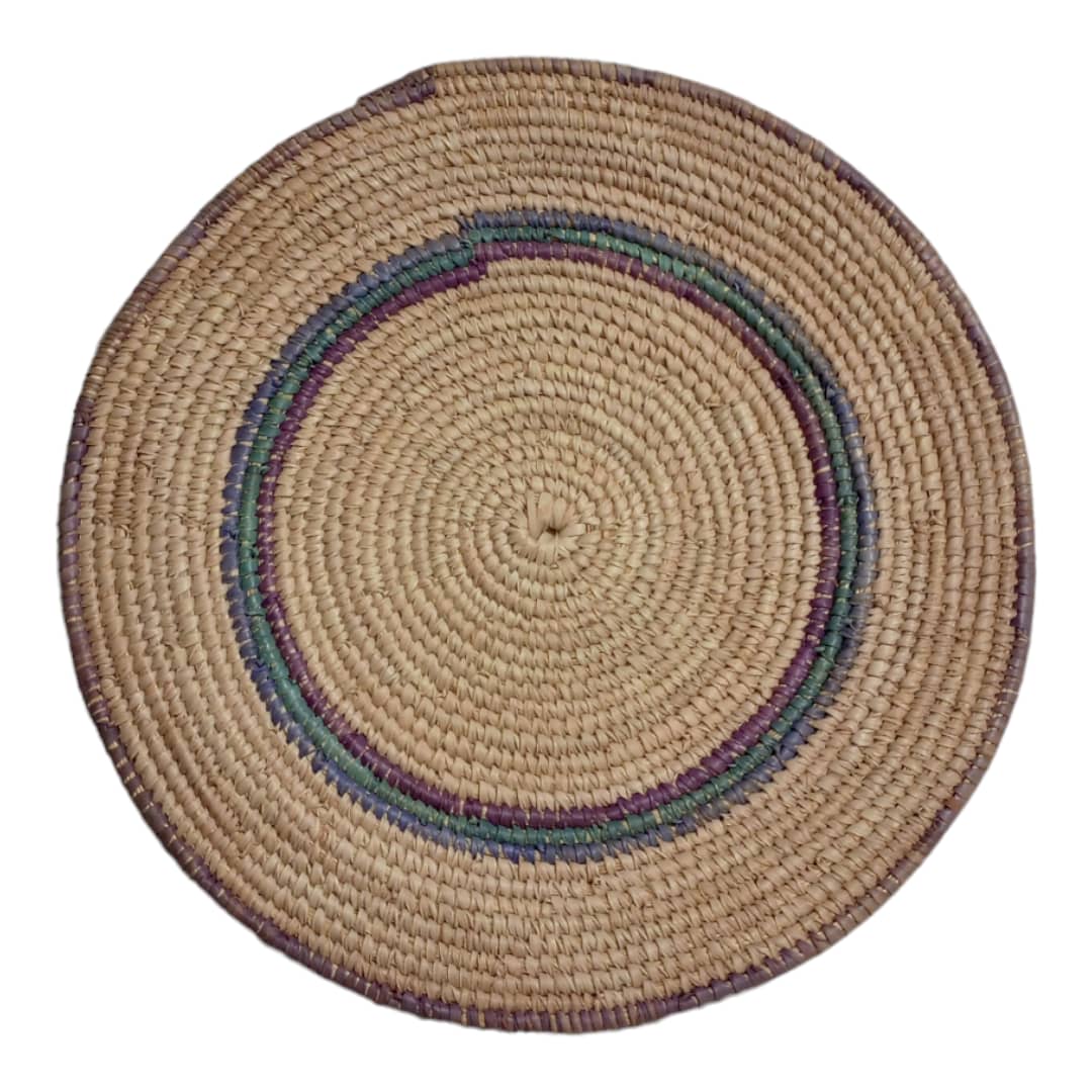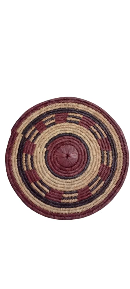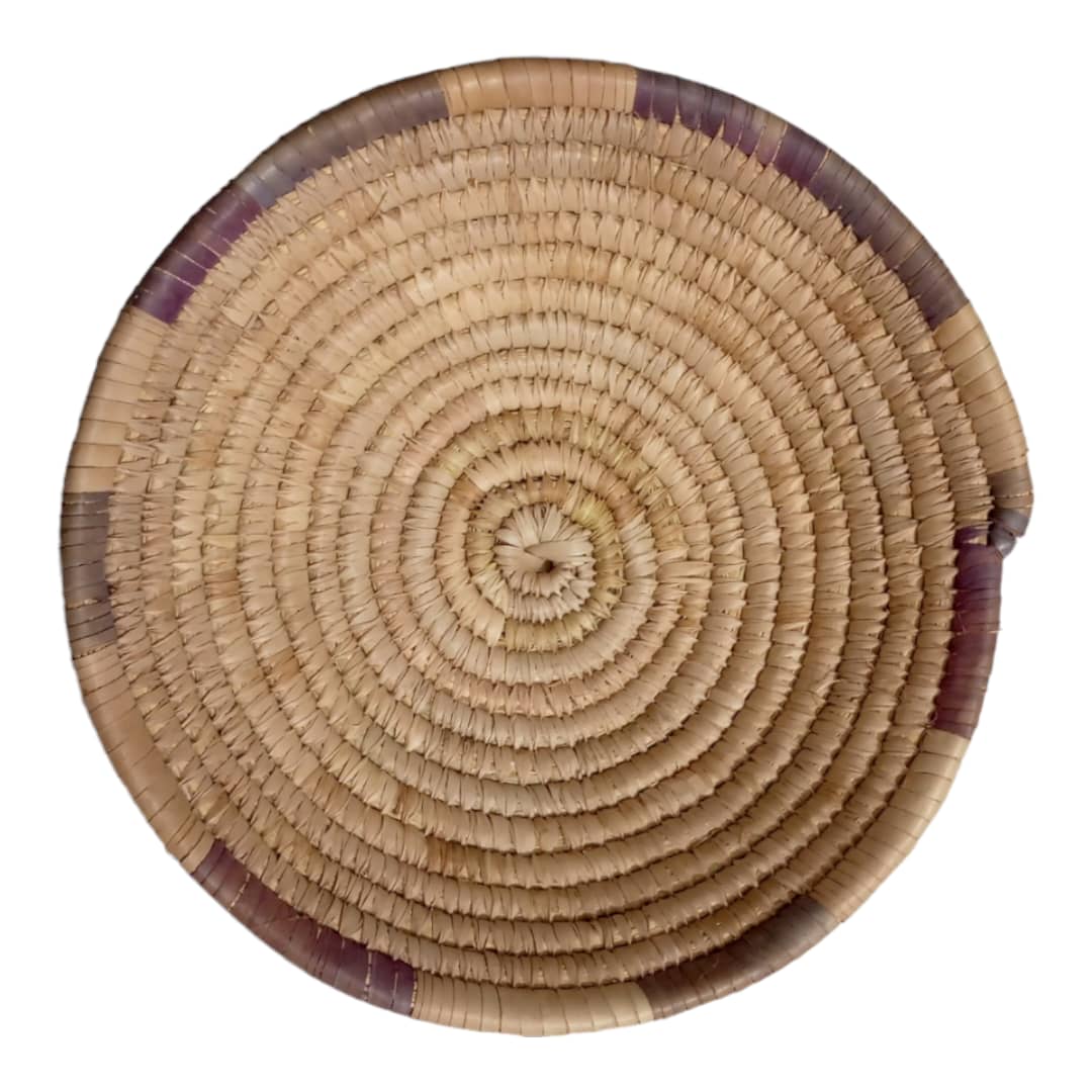 In Nigeria, weavers make beautiful baskets and bowls using color dyed raffia palm leaves around a coil of banana leaf stalk. Banana leaf stalks are pulled apart into thin long strips, dried, bundled into coils and wrapped with raffia. It comes in various colours, shapes and sizes. All materials are sourced locally and renewable, making the bowls sustainable.