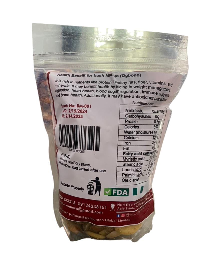 Viunrch Bush mango seed (Ogbono) is found in Nigeria. The seeds are packed with protein and nutrients and are widely known for it’s health benefits. Our Ogbono is deliciously aromatic, adds a thickening consistency and an incredible nutty flavor to rich West African Soups.